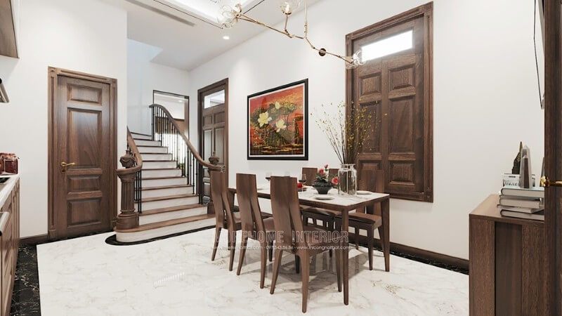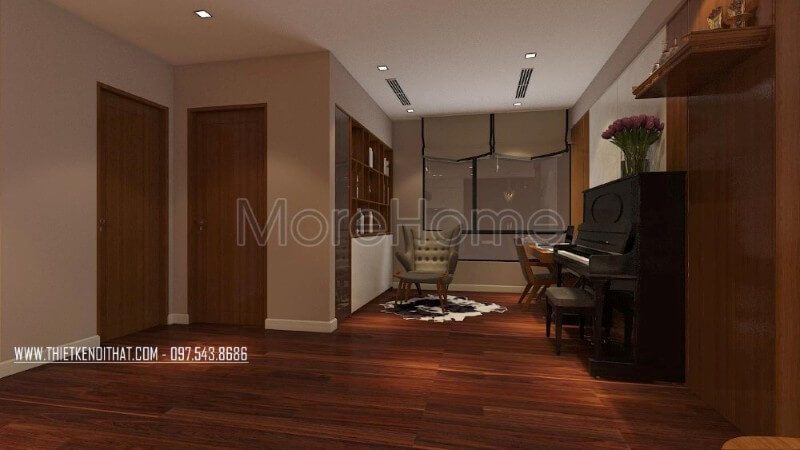 Sản phẩm cửa gỗ hiện đại đẹp bằng gỗ tự nhiên nhập khẩu được Morehome thiết kế và thi công tại biệt thự chùa thầy, quốc oai, hà nội