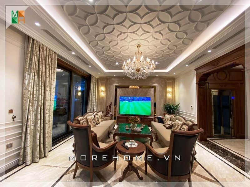Thiết kế nội thất hiện đại đẹp, sang trọng dành cho không gian phòng khách biệt thự cao cấp.