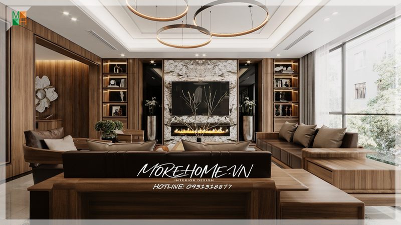 Thiết kế hoàn thiện vách tivi biệt thự Vinhomes Imperia Hải Phòng