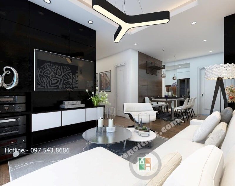 Thiết kế nội thất phòng khách chung cư hiện đại trẻ trung
