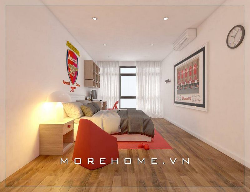 Thiết kế phòng ngủ bé trai tại chung cư hiện đại, nội thất được sắp xếp hợp lí giúp con có thêm nhiều không gian để học tập và nghỉ ngơi