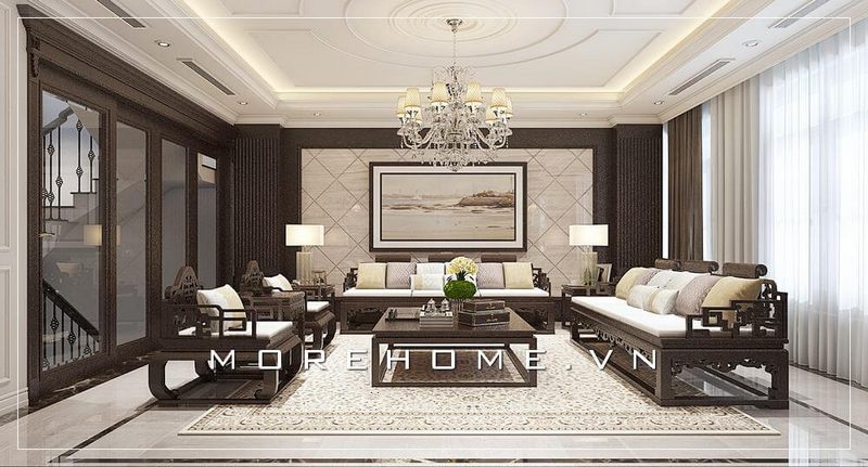 Phòng tiếp khách được thiết kế sang trọng và hiện đại theo phong cách gỗ việt của nhà phố cao cấp sẽ làm nổi bật đẳng cấp của chủ nhà.